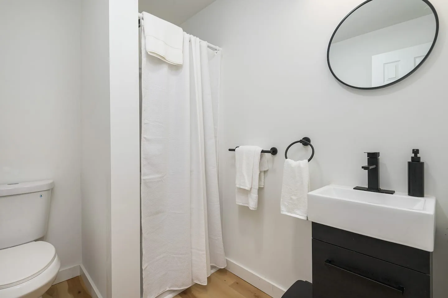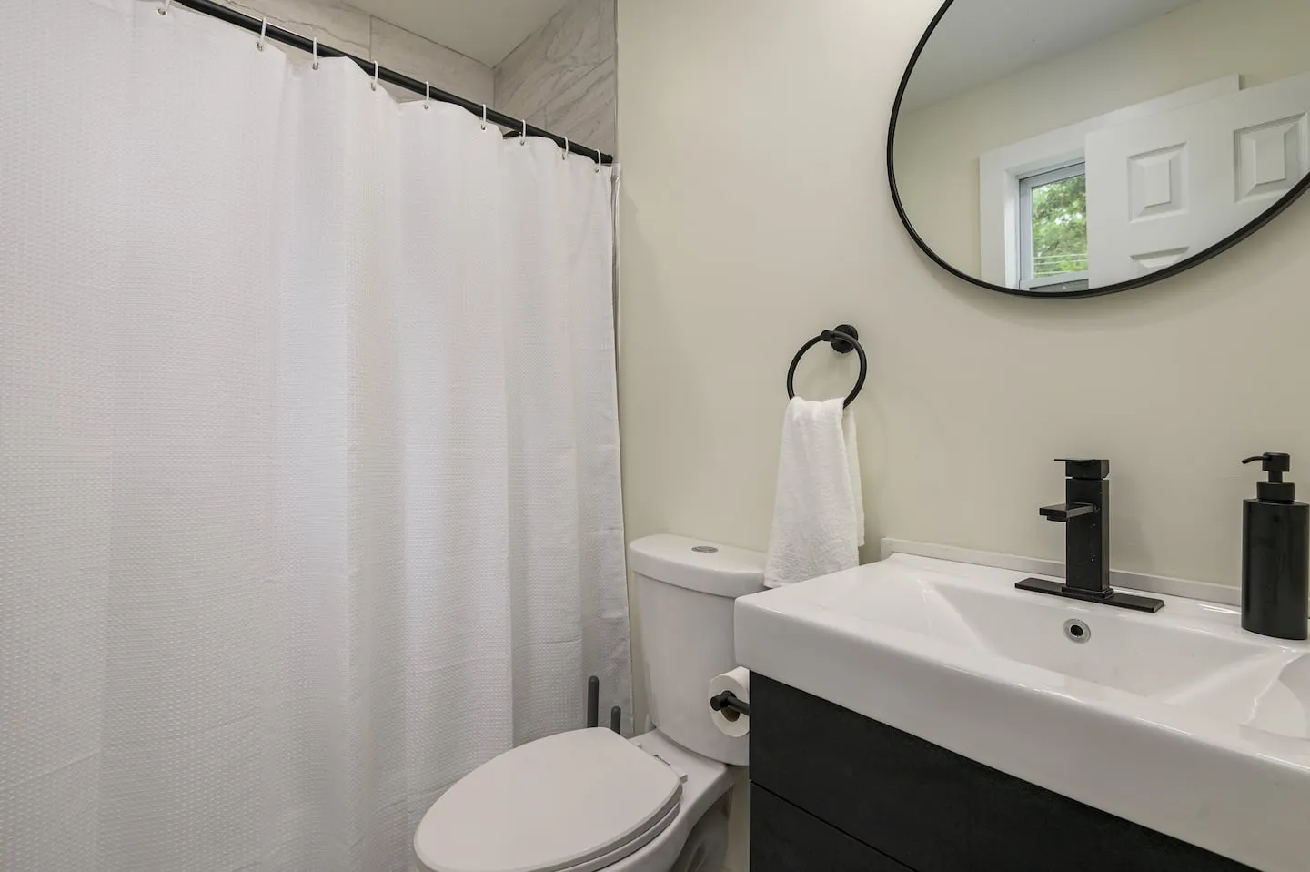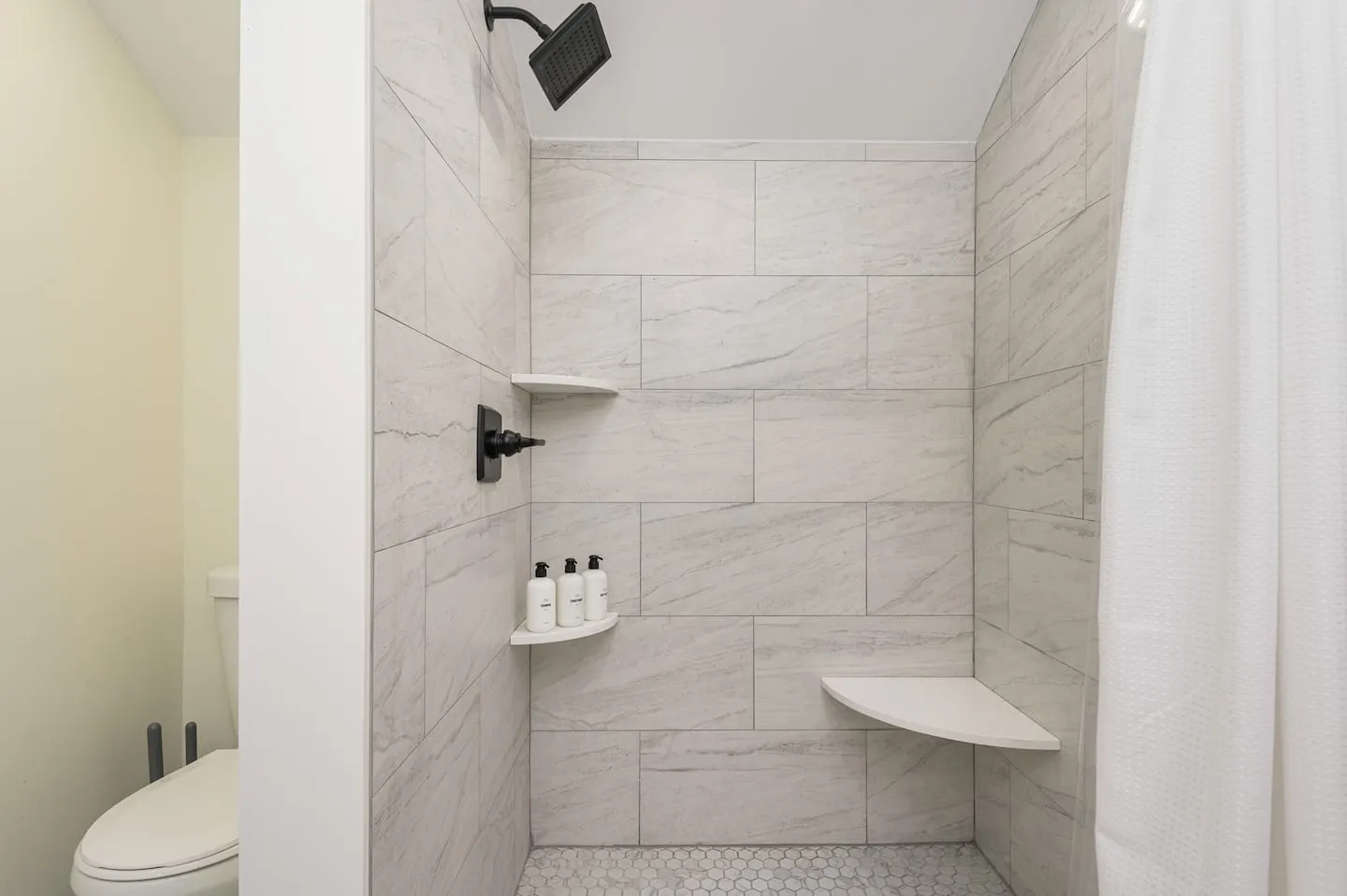 The bathroom distribution strategically places one full bathroom on each of the three levels addressing the logistical challenge of multi-story properties where guests avoid changing floors for bathroom access. One bathroom features bathtub accommodating young children and relaxation preferences, while two bathrooms offer walk-in showers meeting contemporary expectations and accessibility considerations. All bathrooms received complete renovation including modern fixtures and comprehensive stocking with towels, premium toiletries, hairdryers establishing hotel-quality amenity provision. The kitchen renovation features modern appliances and comprehensive equipment inventory including kids' dining items, extensive bakeware, blender, dual coffee systems (Keurig and drip with supplied K-cups and filters), toaster oven, tea kettle, cutting boards, and slow cooker supporting extended-stay meal preparation. The built-in bench dining accommodates 10-12 guests, while outdoor dining extends capacity to the dual deck system (front and back patios) with various seating configurations.