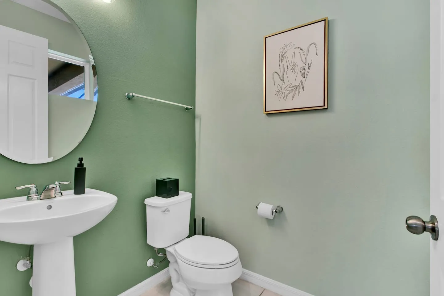 The bedroom programming demonstrates sophisticated capacity optimization through varied sleeping configurations addressing different guest compositions. Three king suites feature ensuite bathrooms providing private retreats for adult couples or primary family units, while additional king and queen bedrooms with shared bathroom access accommodate flexible group arrangements. Two themed bedrooms specifically target children: an Avengers room with full-over-full bunk beds and a dedicated bathroom creates immersive Marvel experience, while standard twin bunk configurations in another bedroom maximize child sleep capacity. The theming strategy required careful execution balancing Instagram-worthy visual impact with durability for high-traffic rental use, incorporating licensed character elements through wall treatments, bedding selections, and décor accessories rather than permanent architectural modifications that could limit future repositioning.