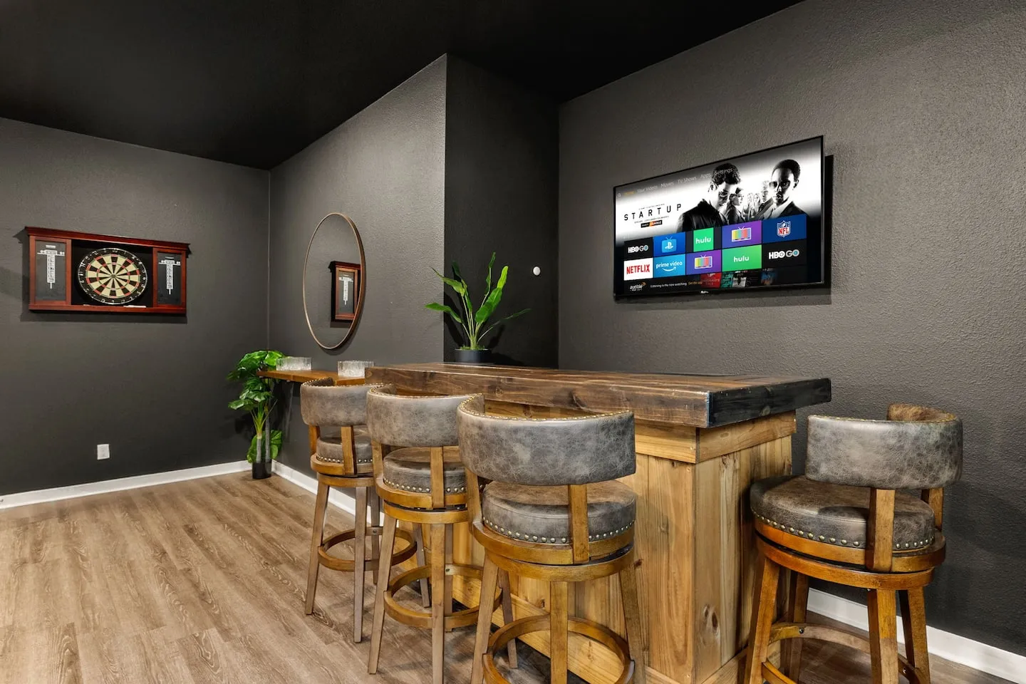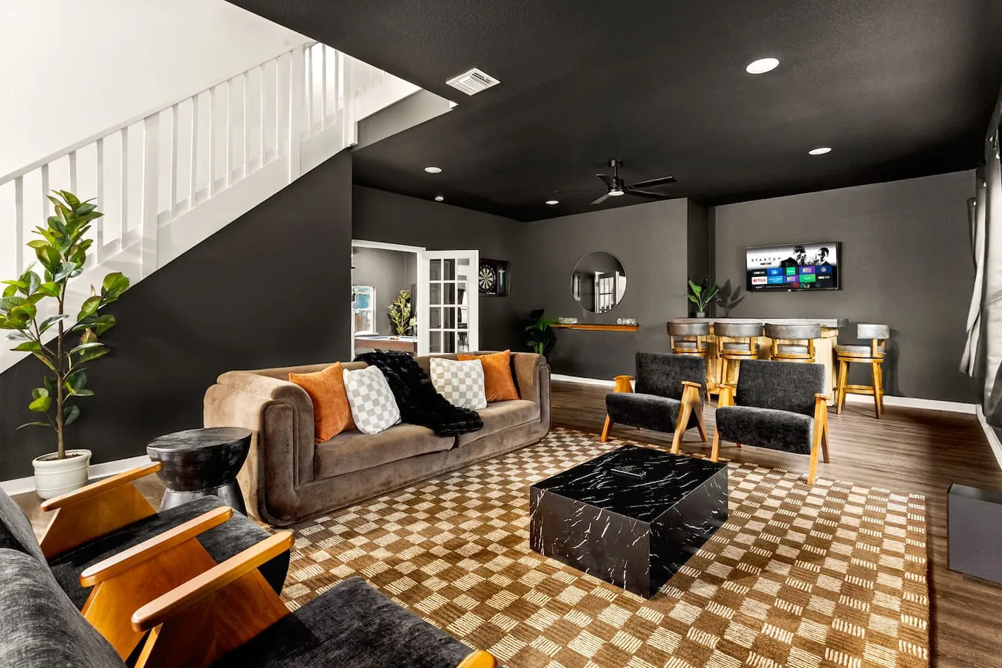 This San Antonio property demonstrates strategic technology distribution achieving perfect 5.0-star rating and Top 5% designation across 28 reviews through comprehensive smart TV placement installing eight screens throughout the two-level home with the flagship 70-inch display anchoring the main living area. This multi-screen infrastructure addresses the fundamental design challenge of group accommodations where competing viewing preferences and varied schedules create bottlenecks around single shared televisions. The solution places dedicated smart TVs in all four bedrooms, the game room, living area, and outdoor space, enabling simultaneous programming without conflict. Each screen receives free streaming services (Hulu, Disney+) supported by robust Wi-Fi infrastructure capable of handling multiple concurrent 4K streams. The outdoor TV integration extends the entertainment grid to the pool and patio zones, treating exterior spaces as functional rooms rather than afterthought amenities.