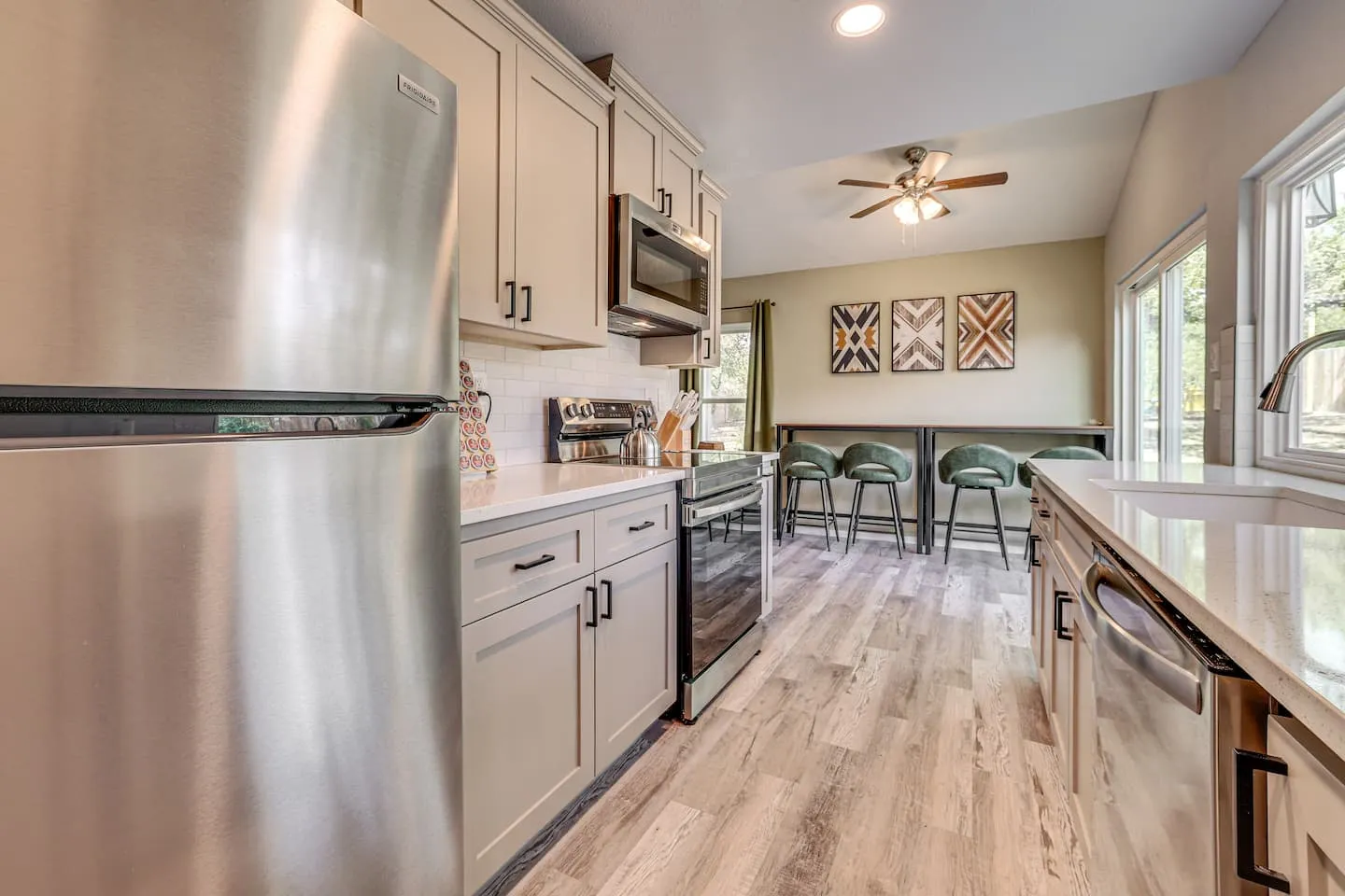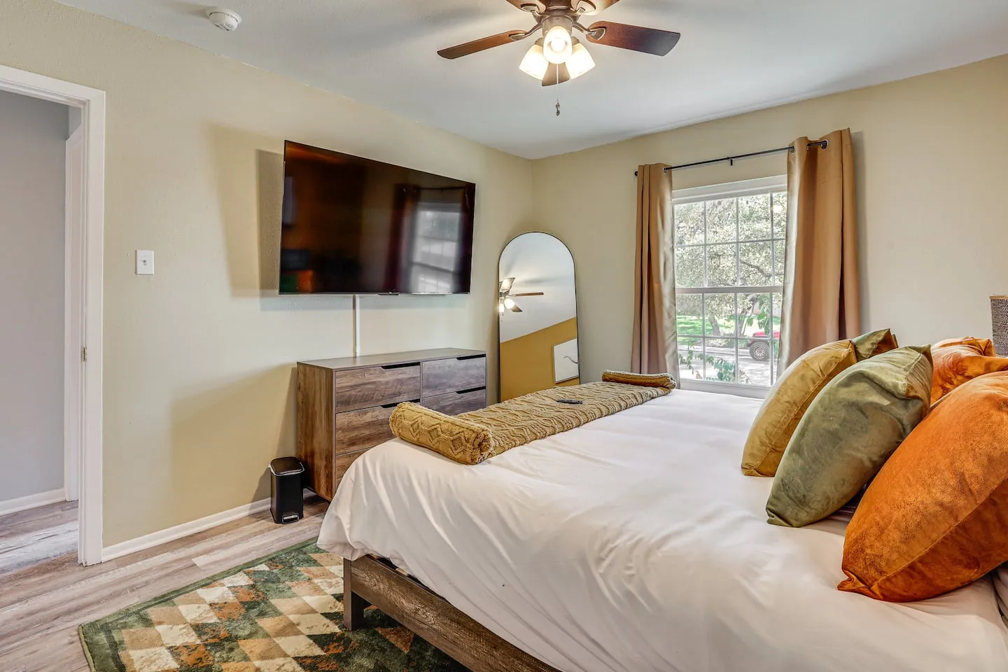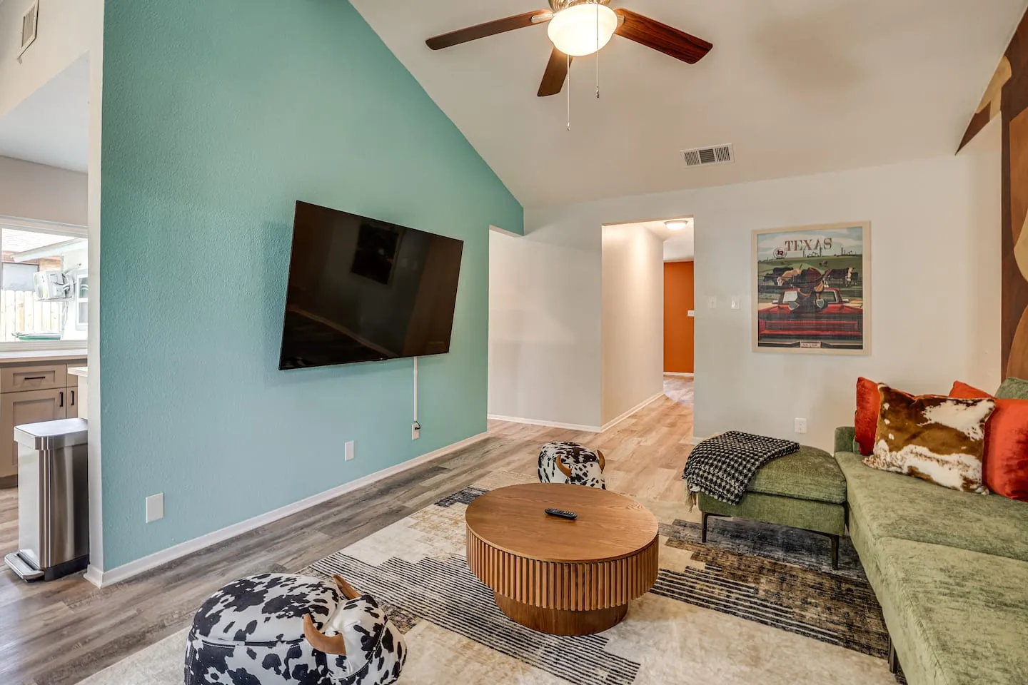 This San Antonio property demonstrates strategic single-story accessibility design achieving perfect 5.0-star rating through horizontal spatial programming eliminating stairs and vertical circulation challenges common in multi-level vacation rentals. The single-story configuration requires only two entry steps, creating nearly barrier-free access appealing to multi-generational groups including elderly guests with mobility limitations, families with young children avoiding stair safety concerns, and guests with temporary injuries or disabilities. This horizontal layout influenced room distribution strategy placing all four bedrooms, two bathrooms, kitchen, living areas, and consolidated game room on one accessible level. The design recognizes that single-story homes command premium appeal among specific demographics despite sacrificing the spatial efficiency and capacity optimization that vertical programming enables in comparable square footage. The accessible configuration particularly resonates with military families visiting Lackland Air Force Base nine miles away, where multi-generational gatherings for graduations often include grandparents requiring mobility accommodations.