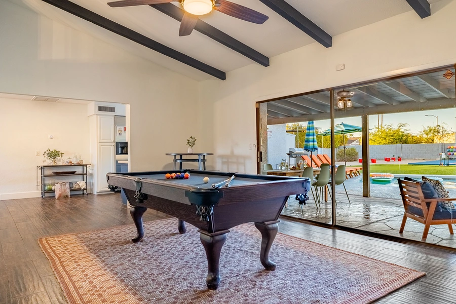Technical systems include smart lock integration for keyless entry, high-speed WiFi infrastructure designed to support multiple simultaneous users, and climate control zoning that accounts for Arizona's extreme temperatures. The property earned finalist recognition in the 2025 AvantStay Awards, validating the design's success in creating a high-capacity entertainment environment that balances activity-driven programming with comfort and livability for extended group stays.