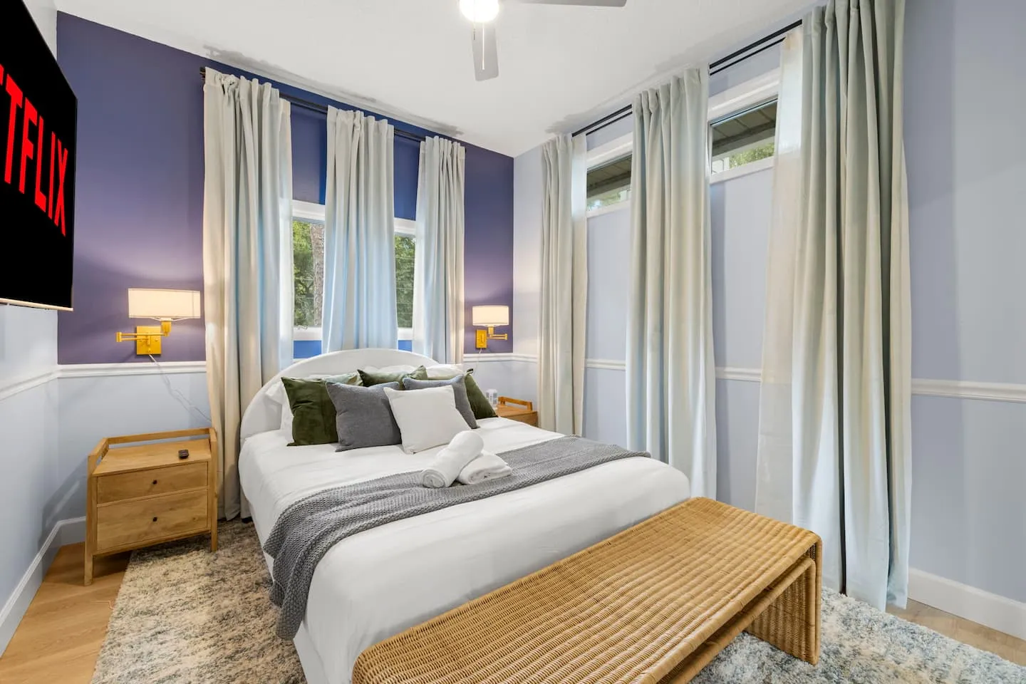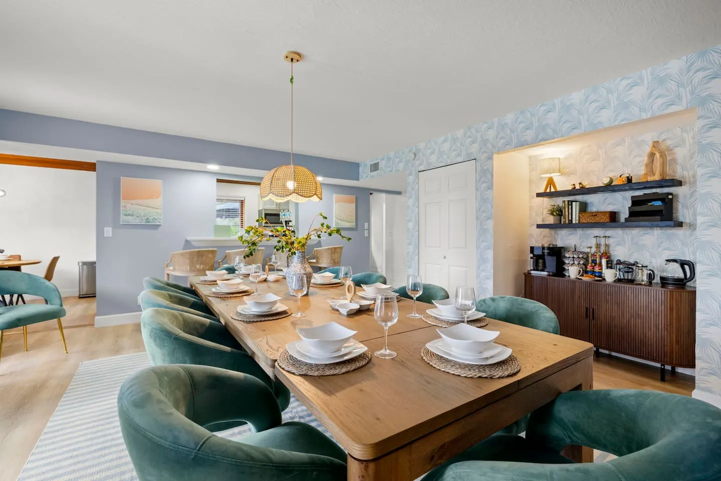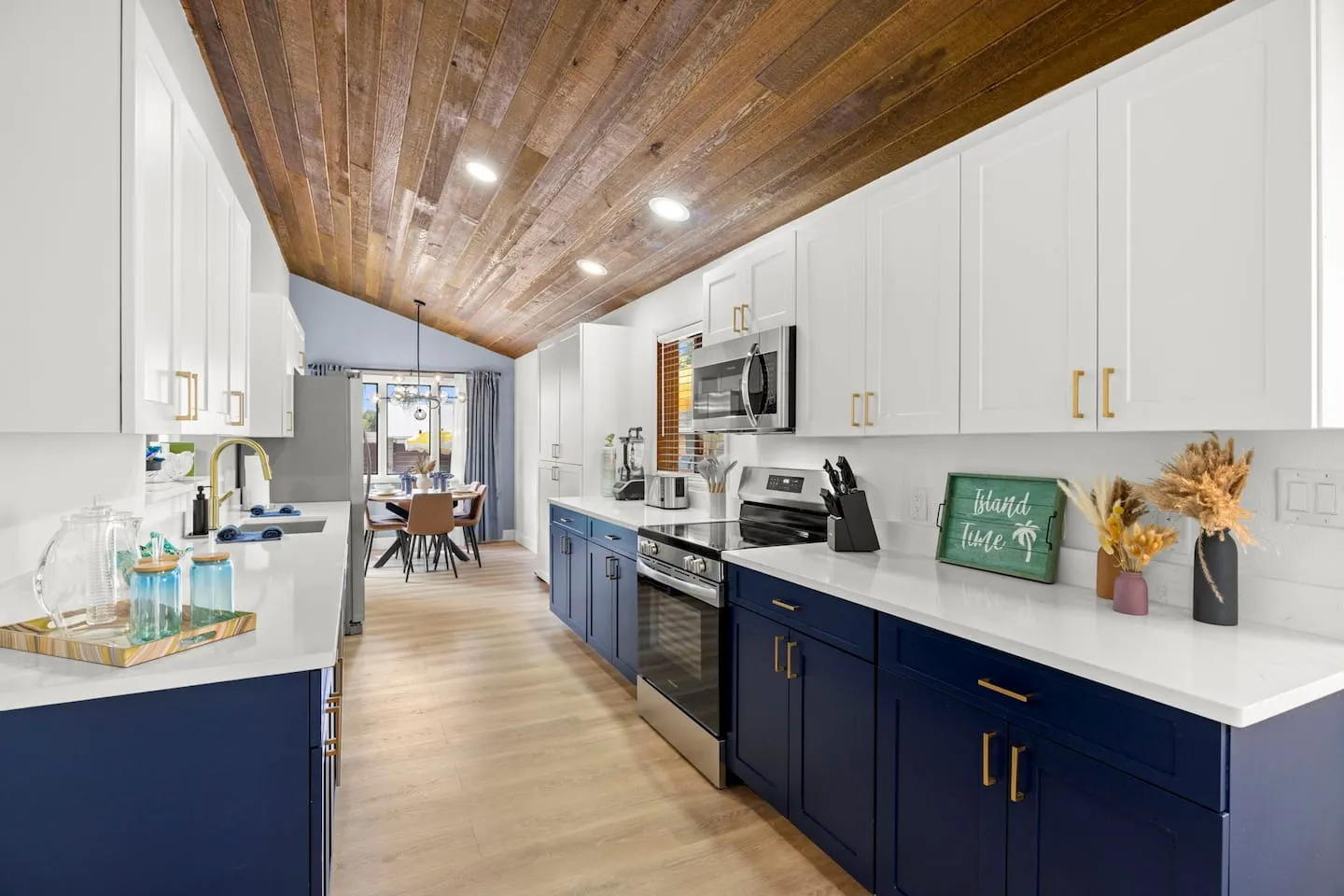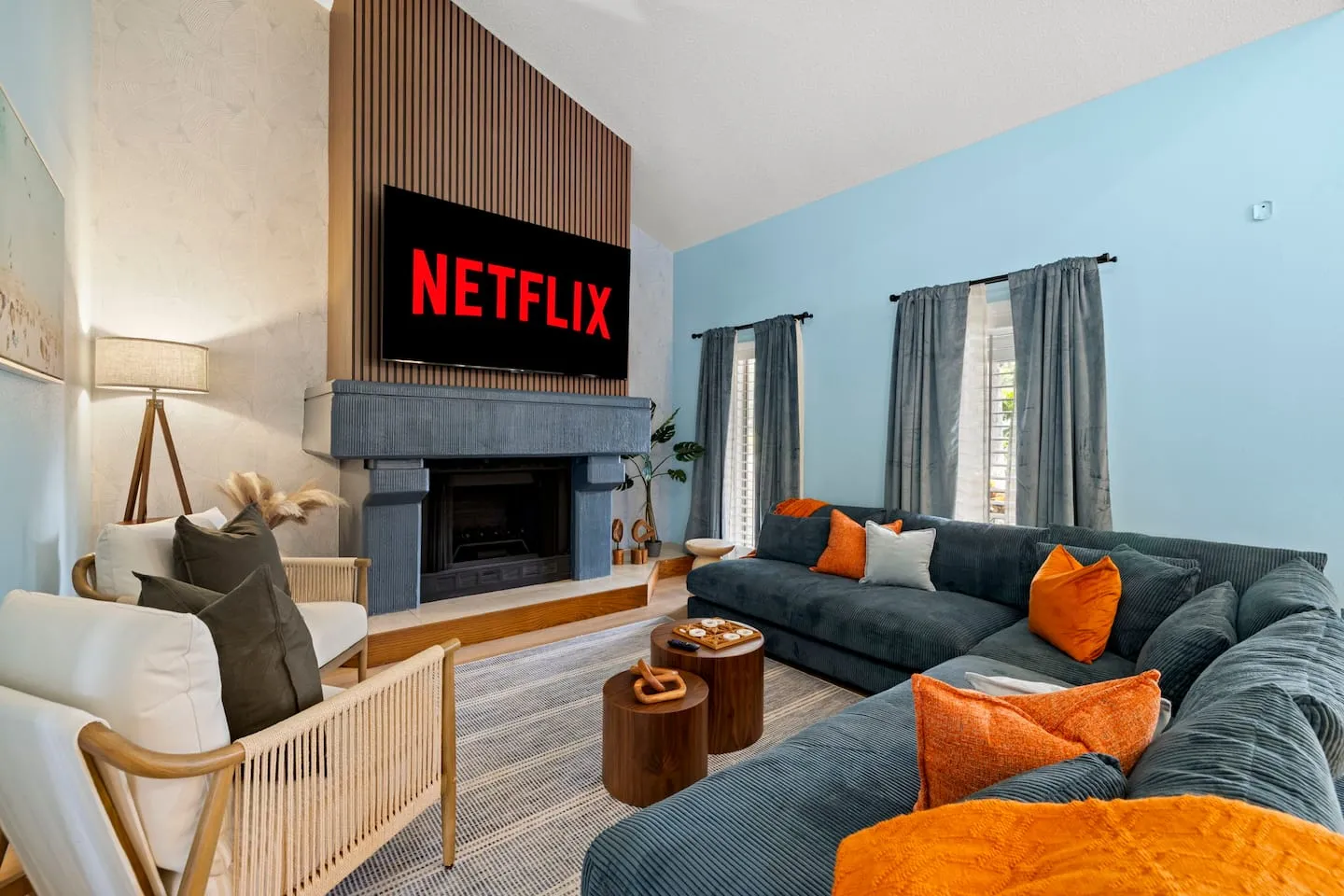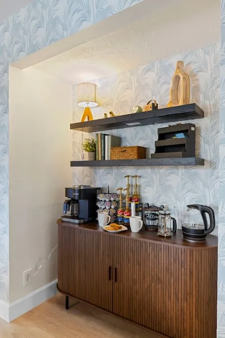 The kitchen receives professional equipment specification including multi-tool mixer, toaster, crockpot, and blender supporting extended-stay meal preparation beyond basic cookware. The 20-person dining capacity distributed across interior dining table, kitchen bar seating, and large outdoor deck with three-burner grill creates flexible entertaining configurations. This distributed dining strategy prevents single chokepoint, allowing simultaneous meal service across multiple zones accommodating varied schedules and preferences. The high-speed mesh WiFi system addresses connectivity throughout the 3,000-square-foot footprint plus outdoor areas, ensuring consistent coverage for remote work at the dedicated workspace plus streaming across multiple smart TVs. The pack-and-play, high chair, and stroller provision demonstrates inclusive family planning, eliminating the airline baggage burden of traveling with infant equipment.